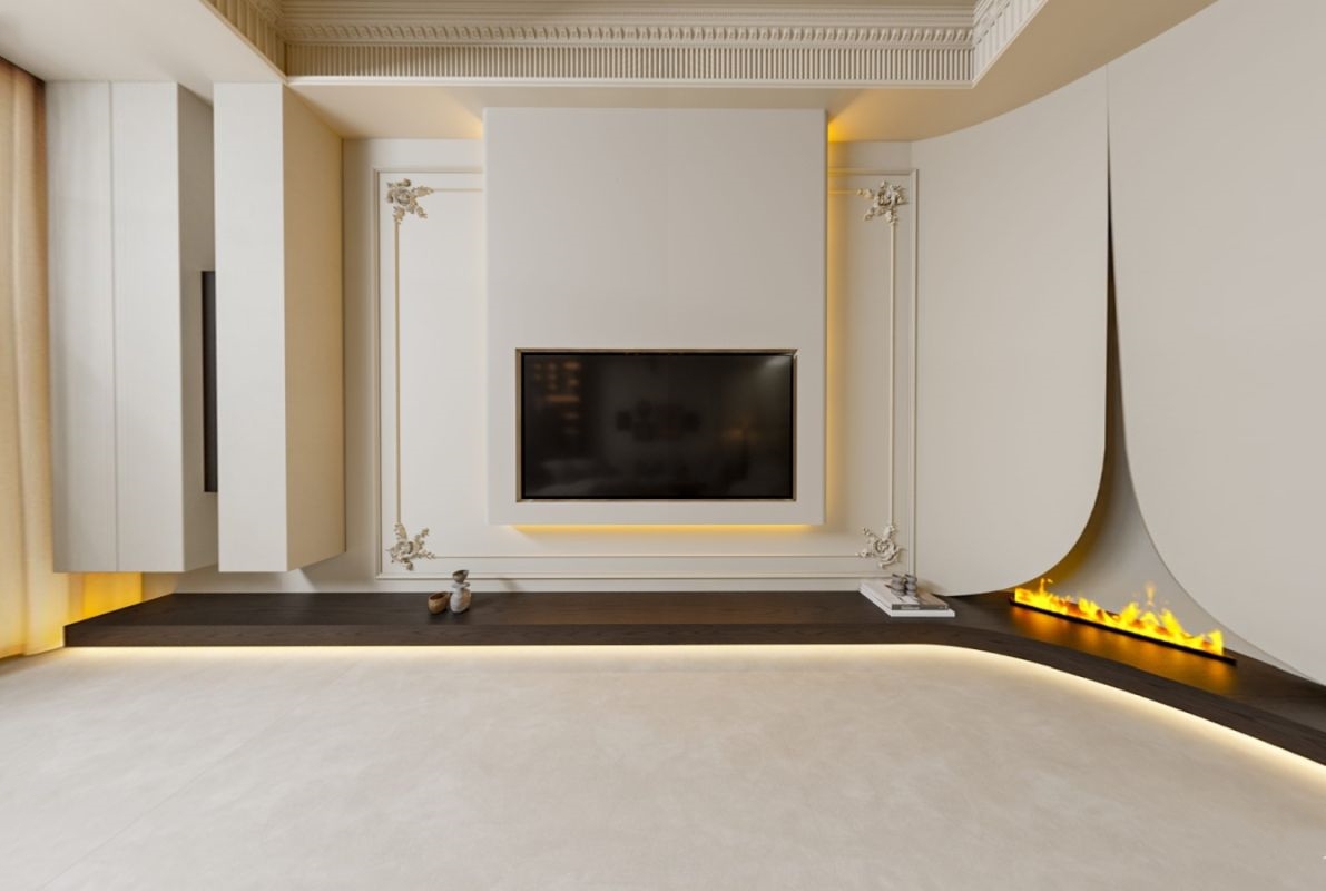 以浅色调亮整个空间,木色自然融入其中,更具自然和谐之感。再以暖色灯带点睛,顷刻激活专属家的温馨氛围。