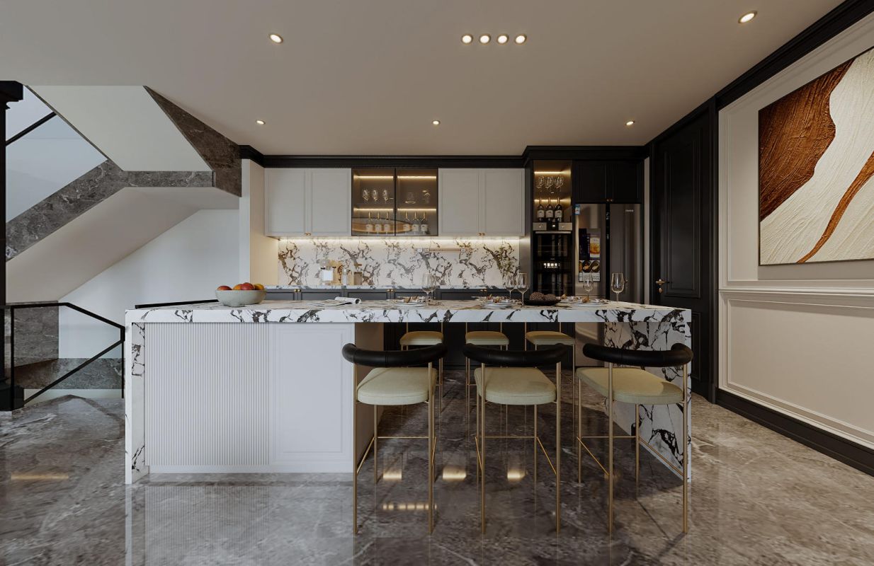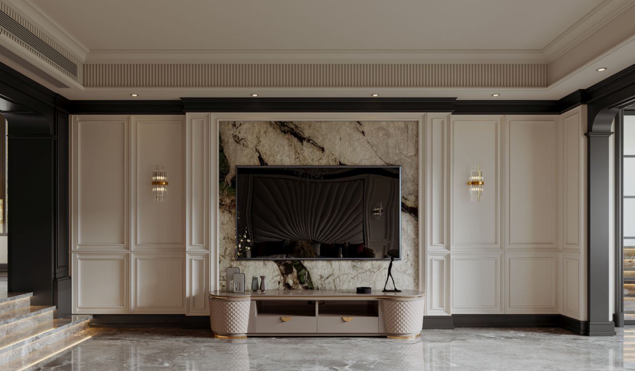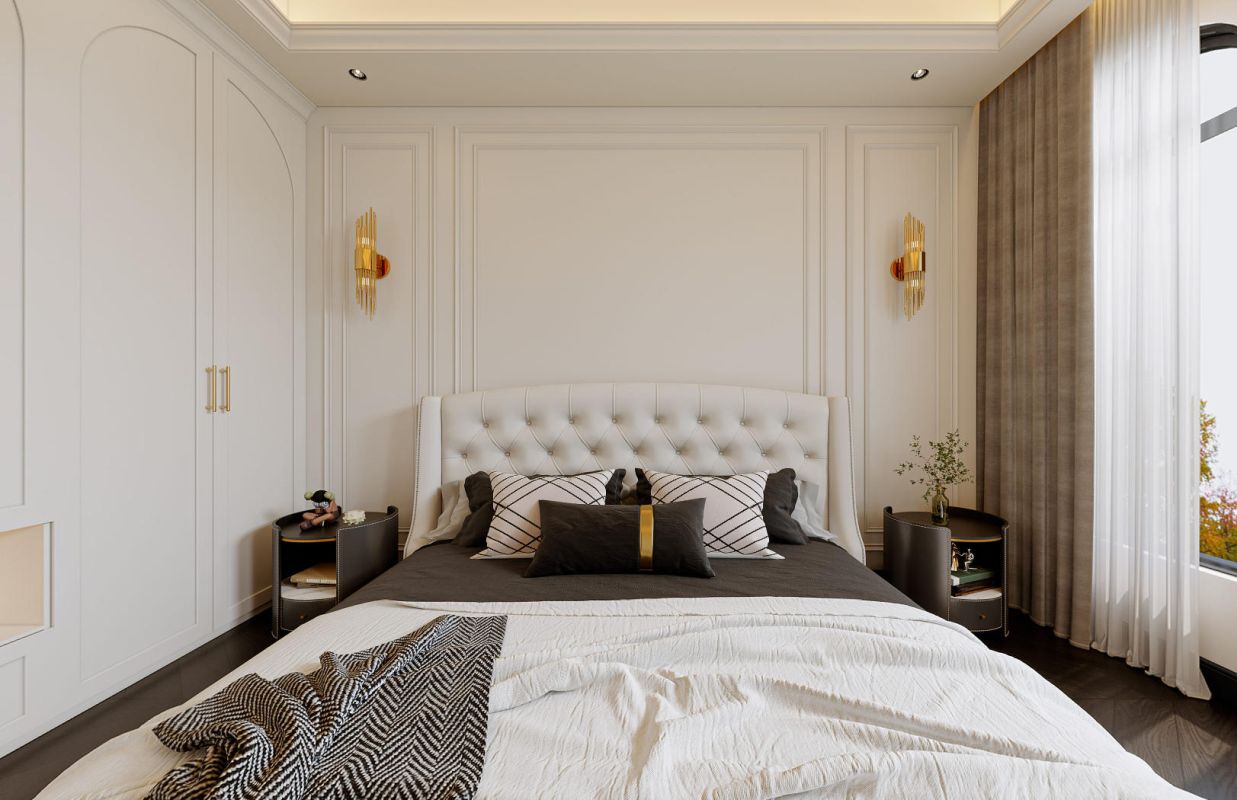 洗练纯净的白、高贵典雅的黑为色彩主调,诠释了经典法式香奈儿风,材质与色彩的碰撞,是塑造空间质感的关键笔触。优雅线条提升空间的纵深感与层次感,让空间显得更加深邃。