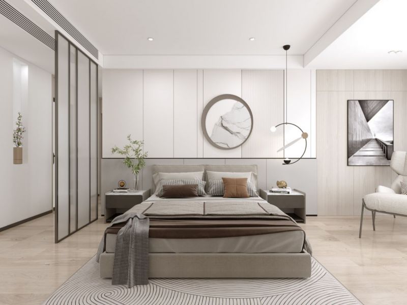 大量的原木材质为空间塑造出纯粹、质朴的空灵意境,无主灯设计搭配嵌入式灯带,展露克制物欲的设计美学,意在通过平静的空间窥见极简的生活理念。