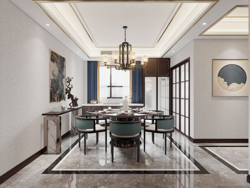 于中式传统文韵礼序而言,没有什么比全家团圆更重要。圆桌,圈椅,不仅符合中式基调,且寓意美满。
