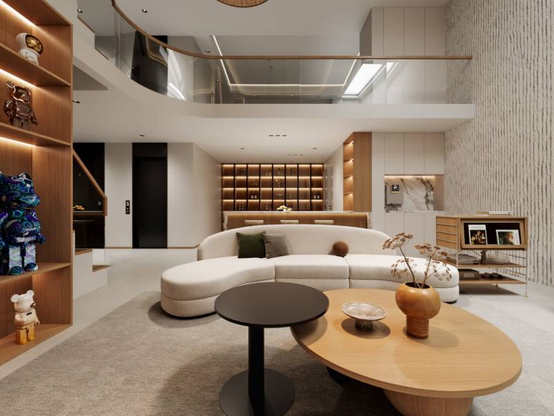 负一、二层连通形成的超高挑空,赋予空间非凡的通透视野。设计师巧妙地将地下室打造成一个兼具美感与实用性的聚会殿堂。