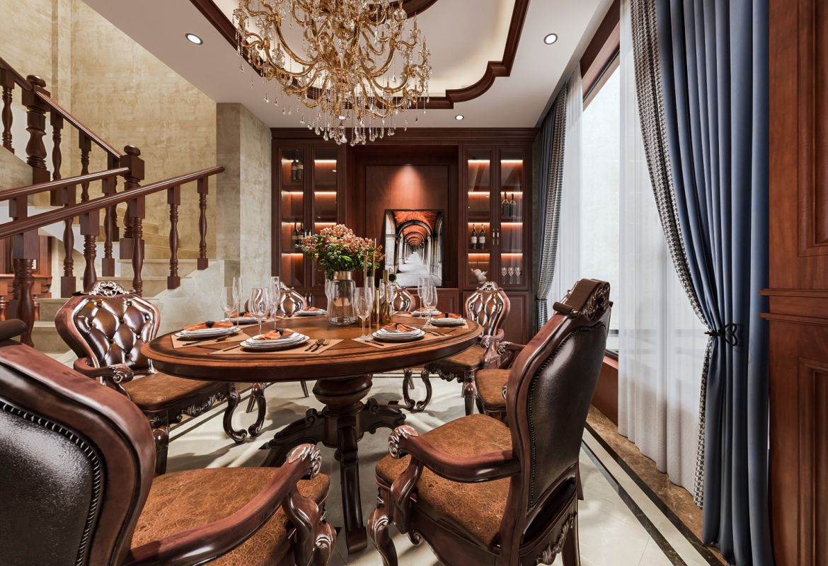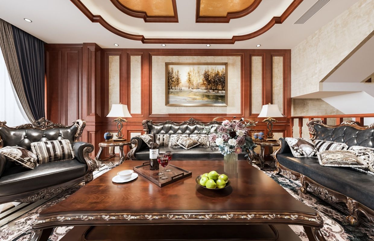 空间以中性色调作为主色,采用简洁的线条,用于吊顶、墙面和地面的装饰,使空间显得更加干净利落,同时保留了美式的优雅气质。