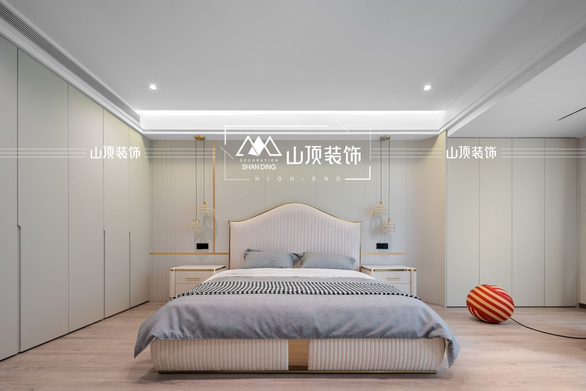 卧室延续整体的现代简约风格。主卧设有独立衣帽间,提供充裕且私密的收纳体验;次卧则配置通顶定制衣柜,线条利落。纯净温和的色调,在满足强大功能的同时,消除了体量带来的压迫感,共同营造出静谧温馨的休憩氛围,为家人与客人提供安宁的睡眠环境。