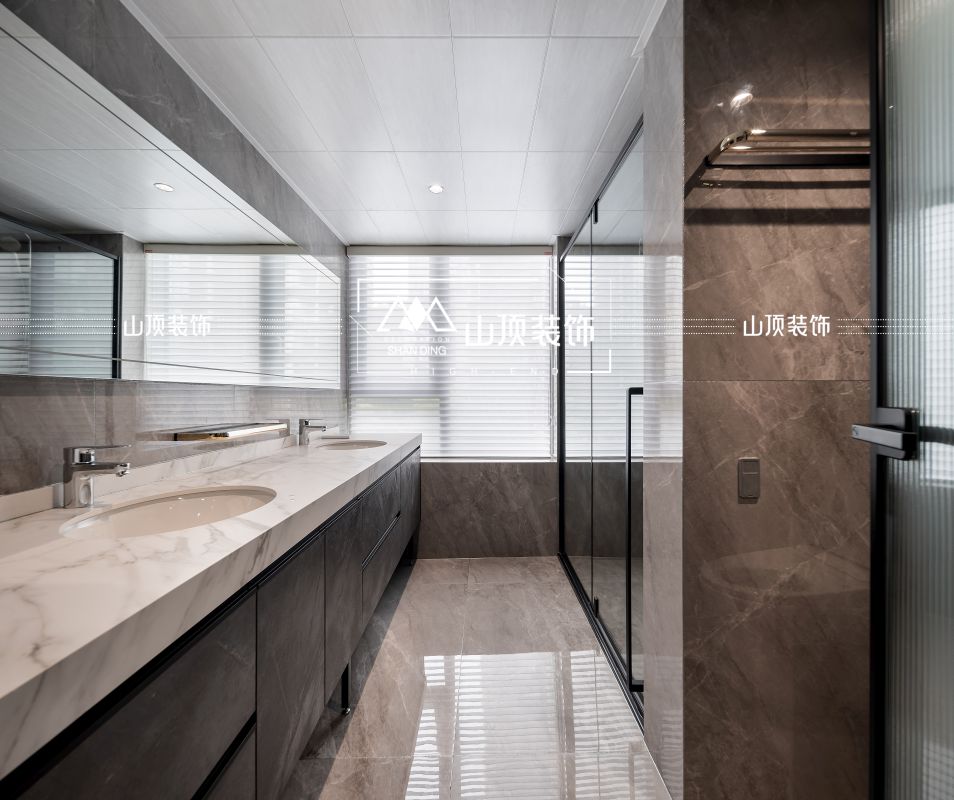 卫生间遵循干湿分离原则。盥洗区被独立出来,不仅提升了使用效率,也让空间更容易保持干爽与洁净。材质与色调的选择上,也与整体空间的现代简约风格保持统一。